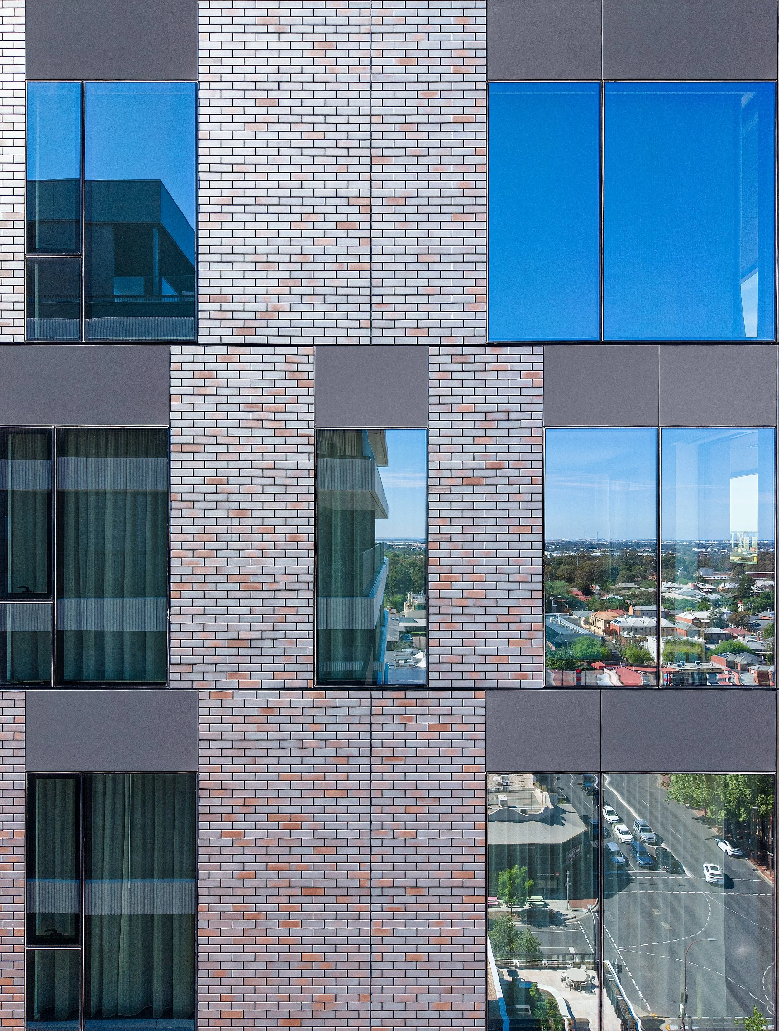 88 O’Connell consists of three residential towers with a total of 164 premium apartments and townhouses. In addition, the podium levels incorporate retail and commercial office spaces. 88 O’Connell utilises our Austech Facades Curtain Wall Brick Slip system.